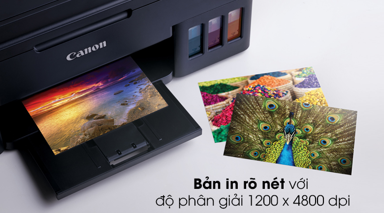 Máy in phun màu Canon G1010 mang đến bản in có độ tương phản cao, hình ảnh, câu chữ hiển thị rõ ràng, sắc nét, hạn chế mờ nhòe, mất chữ tối đa. Đặc biệt máy in ảnh tràn viền đến cỡ A4 cực chân thật cho bạn tạo nên những album ảnh như ý lưu trữ tiện lợi.