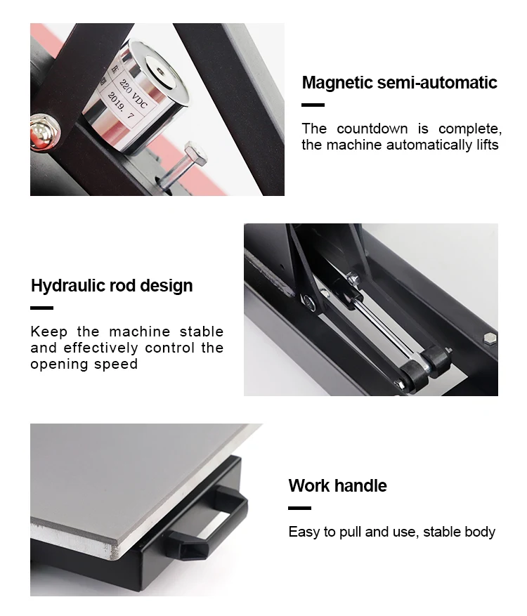 - Máy ép nhiệt 32x45 có tay cầm trợ lực. Giúp người dùng tốn ít lực hơn mỗi khi thực hiện ép nhiệt lên sản phẩm.