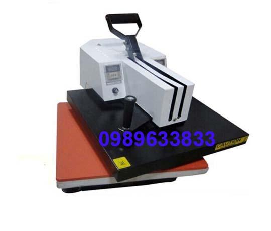 - Máy ép nhiệt xoay ngang 38×38 Thiết kế xoay ngang trục ép giúp cho việc thao tác đặt vải, đặt bản in trên mặt phẳng rất thuận tiện, không bị ảnh hưởng bởi nhiệt độ mặt ép (việc này rất thuận lợi cho việc in màng cao su trên áo tối màu